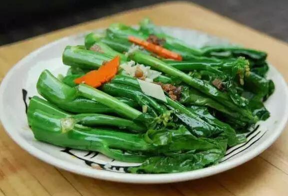 芥蓝味甘,性辛,具有清热解暑、利水化痰、解毒祛风作用。对肠胃热重、熬夜失眠、虚火上升,也可治疗缺少维生素C而引起的牙龈肿胀。