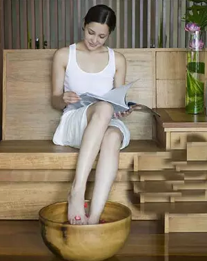 对于泡脚的过程,古人也是讲究着呢。一般取艾叶50~100克,放在铁盆里加清水煮开,再倒入木盆中。泡脚最好是用木盆,不用铁盆或铝盆,因为金属易冷,不利于温补。待水温降至40℃左右后,就可以开始泡脚了。水量至少要能浸没整个脚背,可以至脚踝以上、膝盖以下。泡脚时间以半小时左右为宜,其间,若水冷了可适当加些热水,泡至微微出汗是最好的。